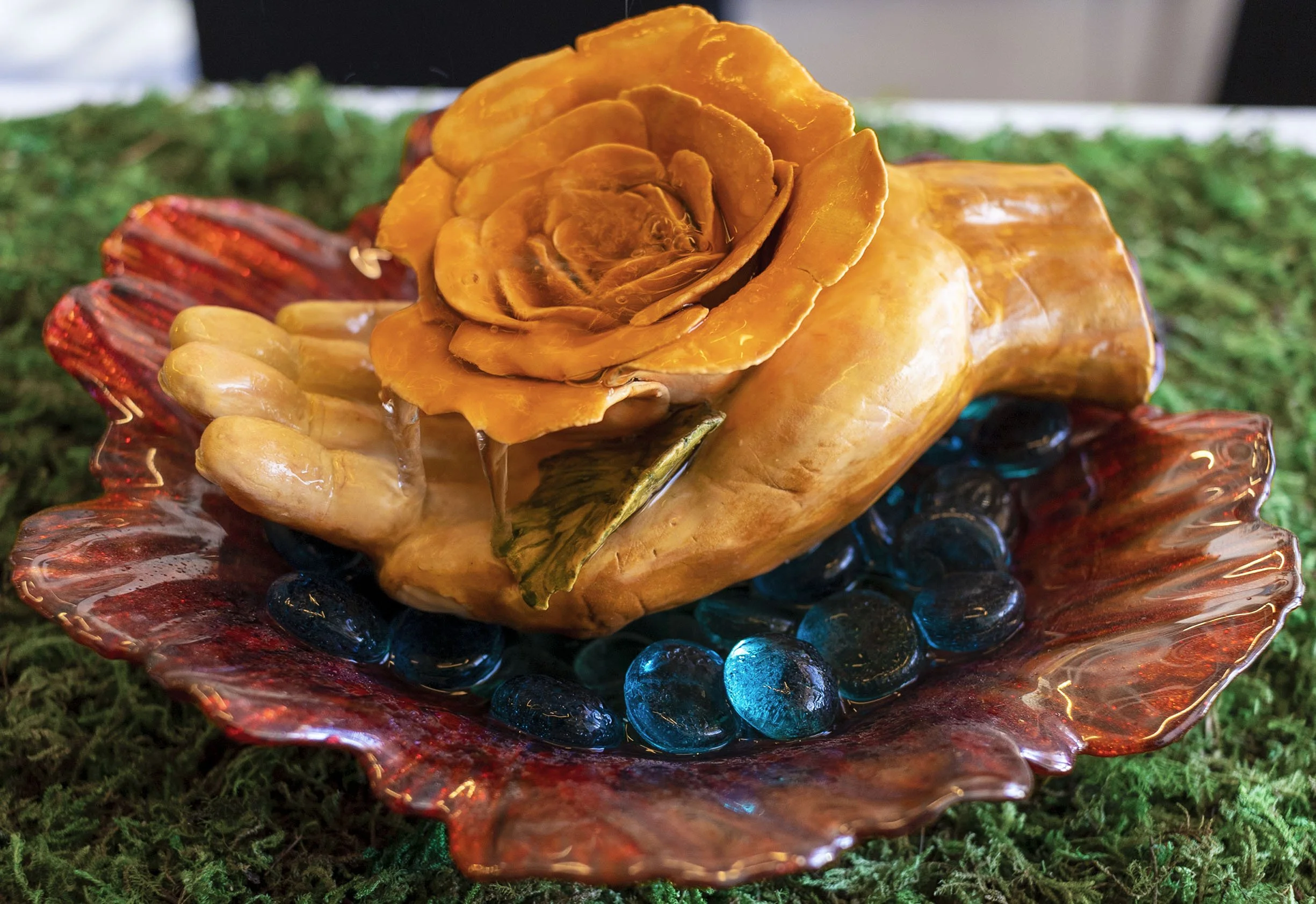 Each hand-built piece is a serene nature scene— from enchanting fountains to illuminating lamps; every one harmonizes the elements of water, fire, earth, and air.
